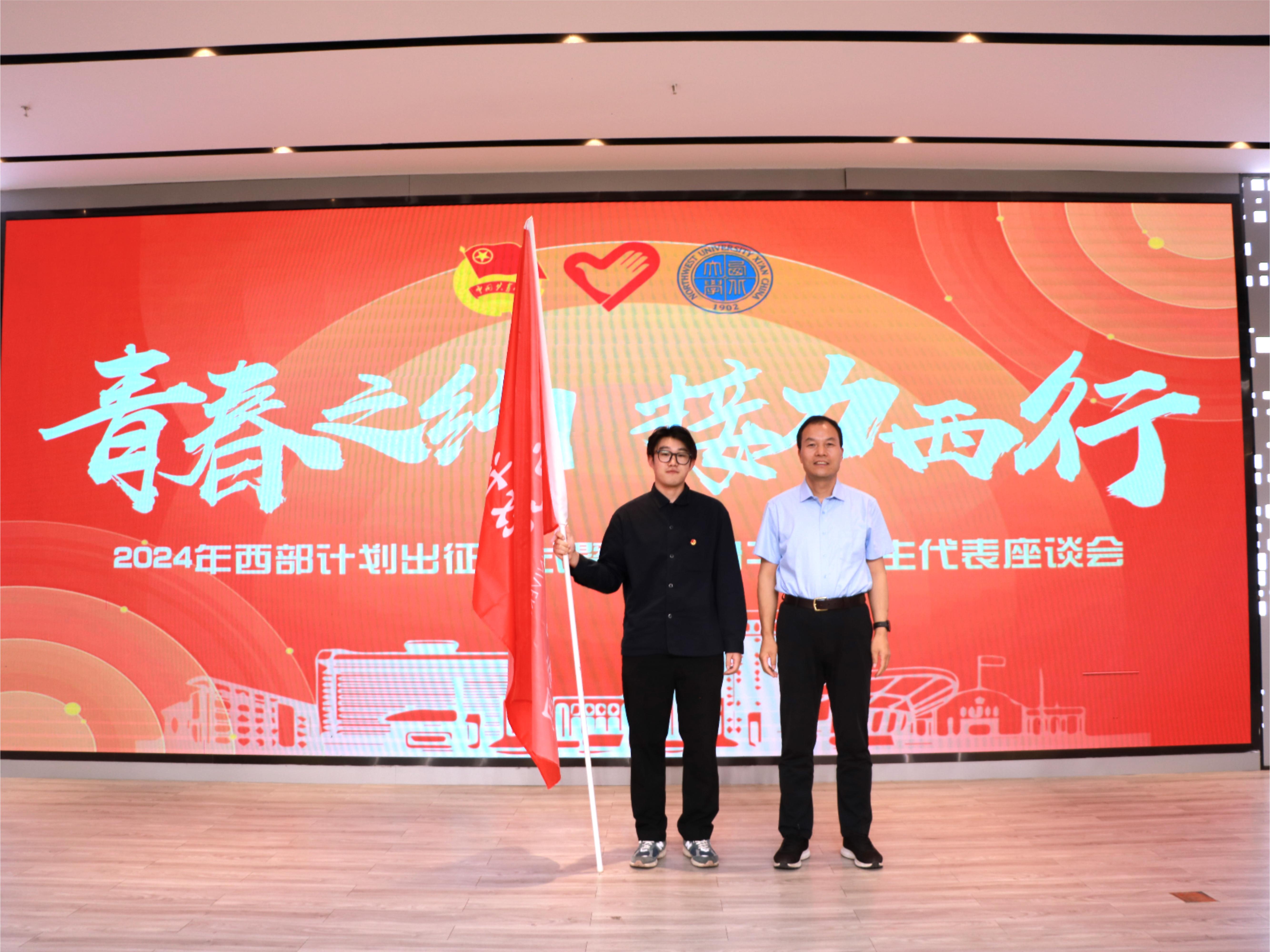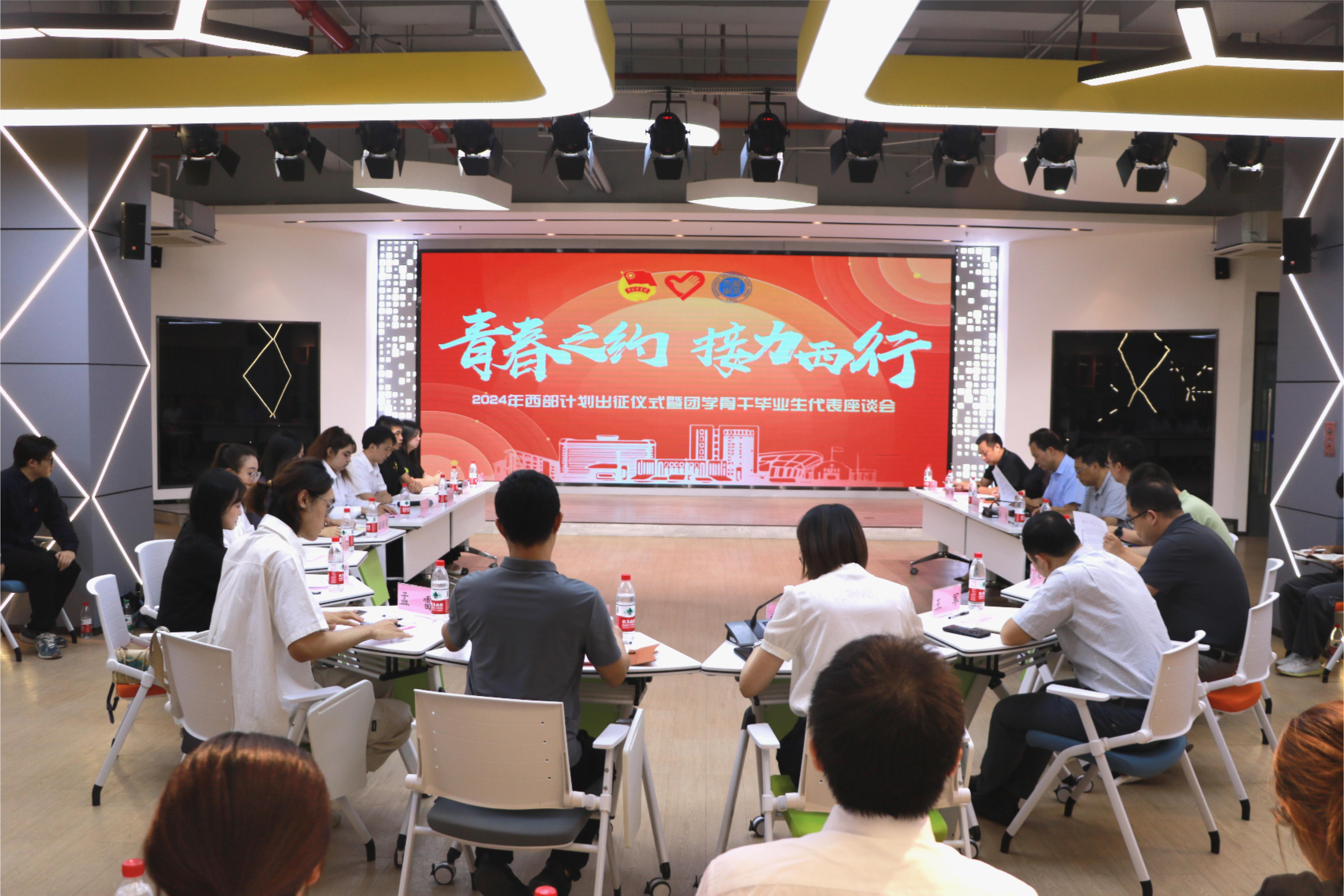 7月2日下午,2024年西部计划出征仪式暨团学骨干毕业生代表座谈会在长安校区举行。校党委副书记吕建荣,学校相关单位负责人,2024年西部计划志愿者、第26届研究生支教团成员以及团学骨干毕业生代表参加了座谈会。座谈会由校团委相关负责人主持。