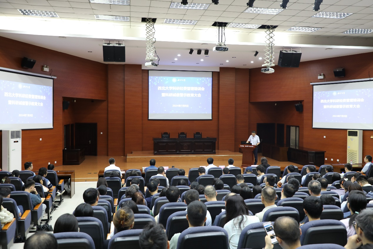 为进一步推进党纪学习教育走深走实,加强警示教育,7月8日下午,白菜官网在长安校区召开科研经费管理培训会暨科研诚信警示教育大会。国家自然科学基金委员会科研诚信建设办公室二处副处长(主持工作)杨亮,校党委副书记、纪委书记、省纪委监委驻校纪检监察组组长肖道远出席会议,社科处、审计处、财资部负责人、各理工科学院(系)、遗产学院、经管学院、公管学院、科学史高等研究院党政主要负责人,各学院(系)分管科研工作负责人、科研秘书、国家自然科学基金在研项目负责人、科研助理等参加会议。会议由科技处负责人主持。