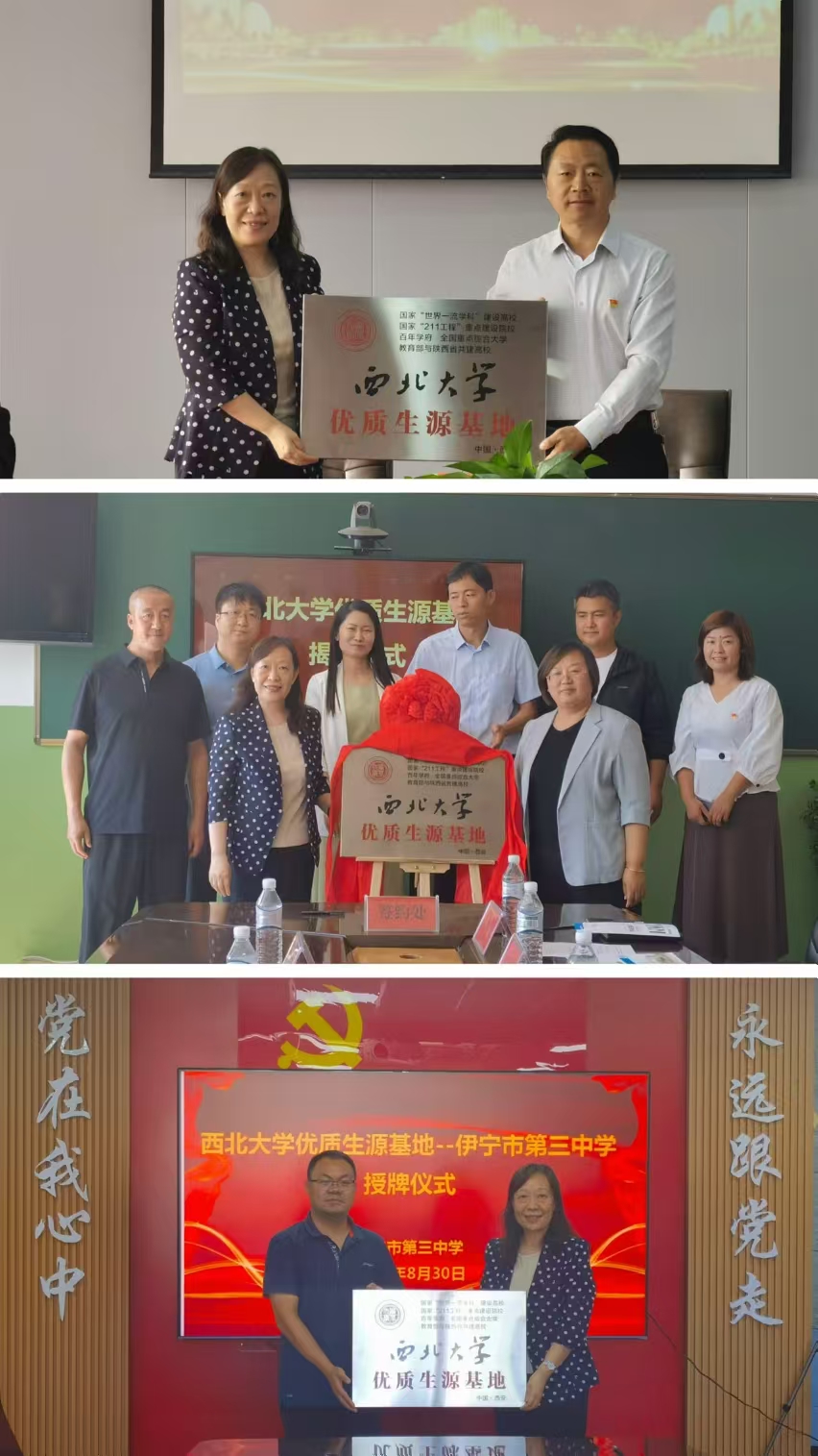 8月30日至31日,副校长曹蓉带队先后赴伊宁市第三中学、察布查尔县高级中学、霍城县第二中学拓展白菜官网与优秀高中交流合作,并与三所学校签约授牌,共建“全讯600cc大白菜优质生源基地”。三所学校领导班子成员、察布查尔县教育局、霍城县教育局主要负责人参会,教务处相关同志陪同。