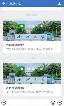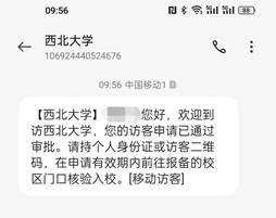 访客申请完成后,系统会将欢迎入校的短信发送至来访人员,在预约日期内持本人身份证或访客二维码到门卫处核验通过即可入校。