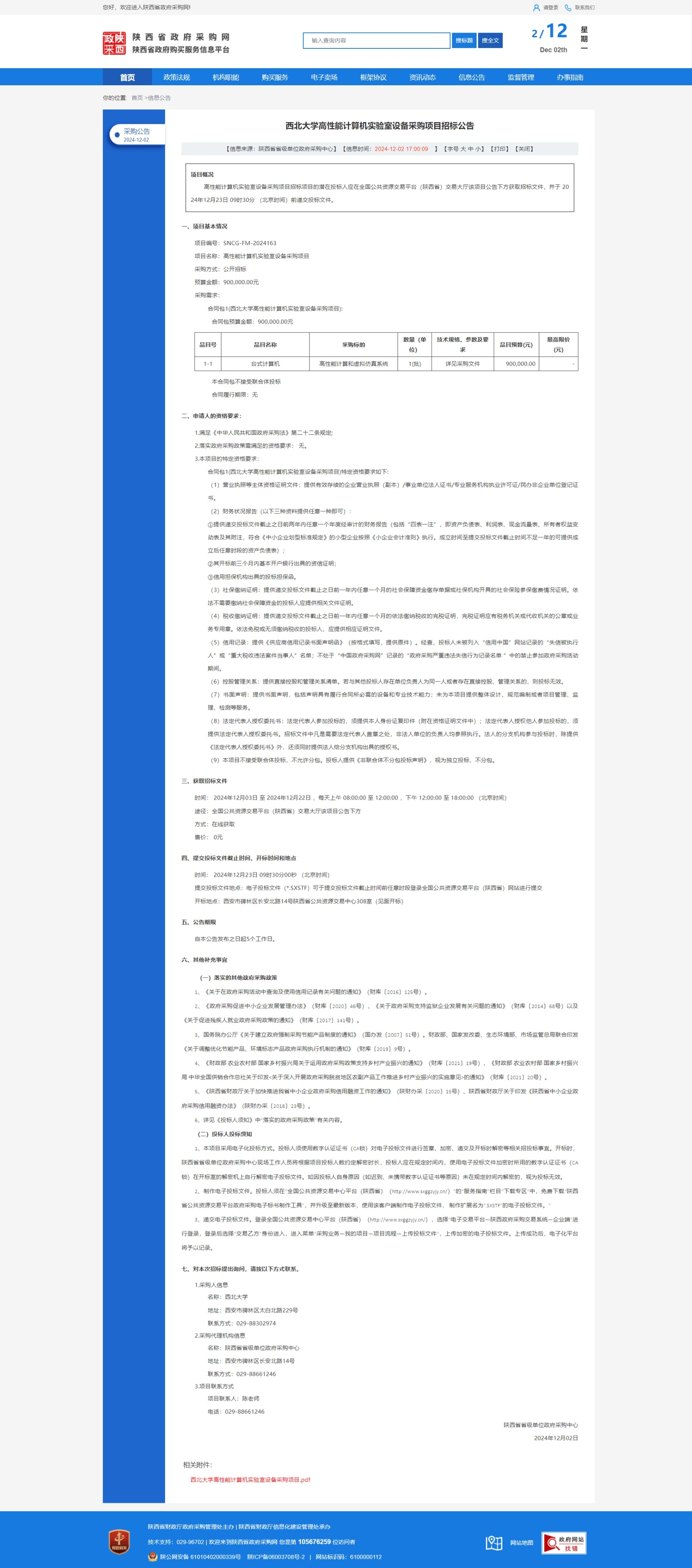 原公告链接:https://www.ccgp-shaanxi.gov.cn/freecms/site/shaanxi/ggxx/info/2024/8a69c95d921859f0019385fa52aa33e9.html?noticeType=001011¬iceId=6ee78a15-b08d-11ef-8063-08c0eb20c666