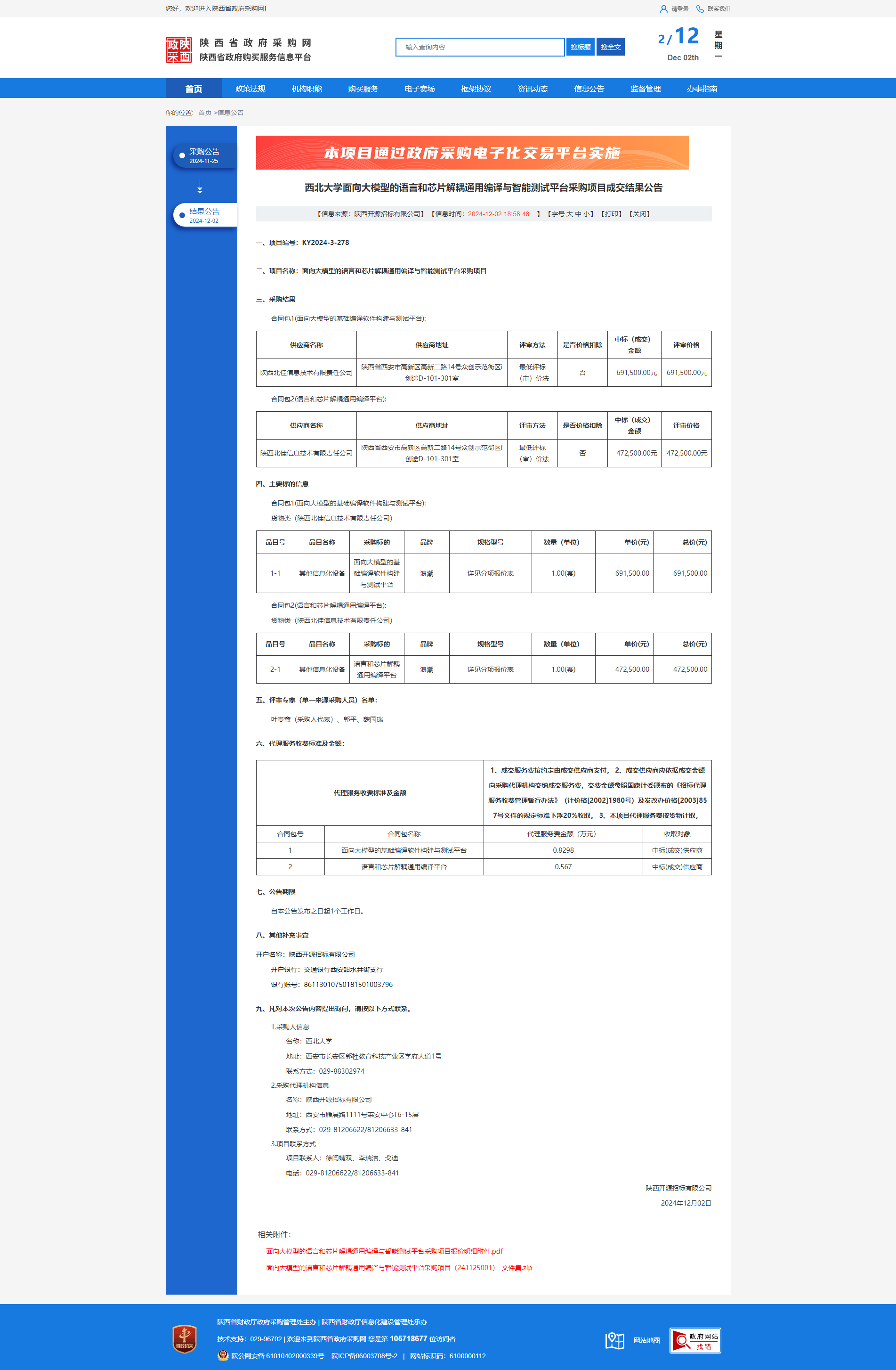 全讯600cc大白菜面向大模型的语言和芯片解耦通用编译与智能测试平台采购项目成交结果公告