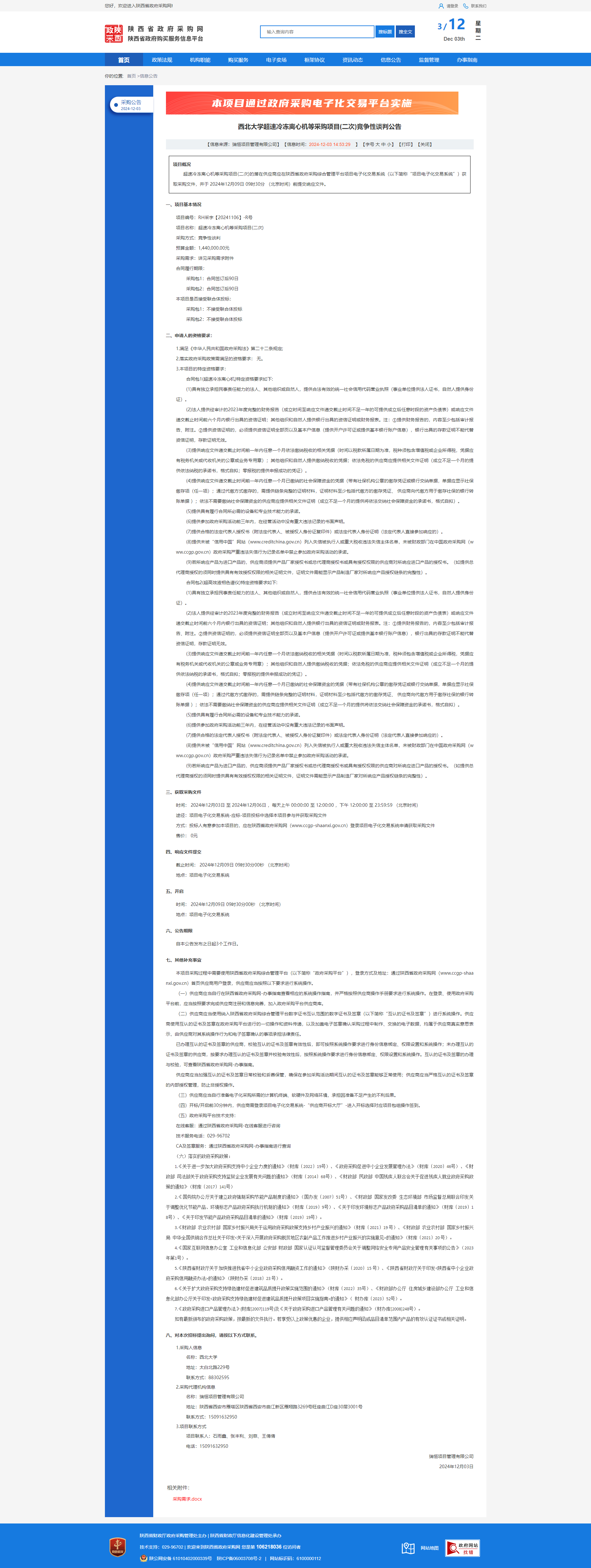 全讯600cc大白菜超速冷冻离心机等采购项目(二次)竞争性谈判公告