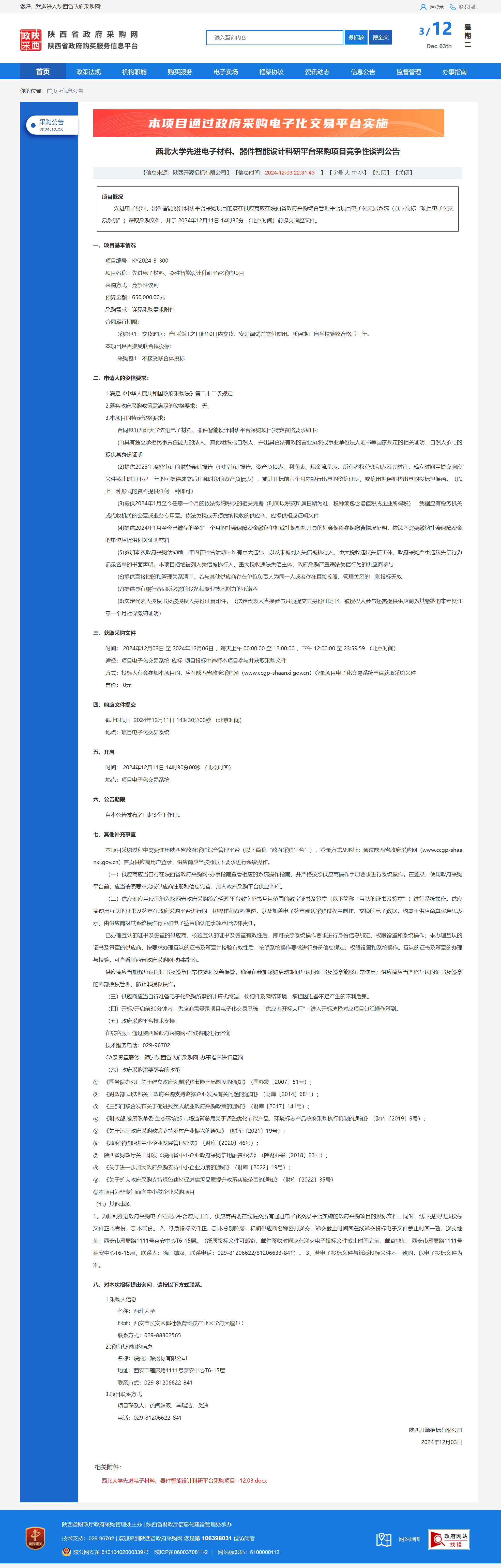 全讯600cc大白菜先进电子材料、器件智能设计科研平台采购项目竞争性谈判公告