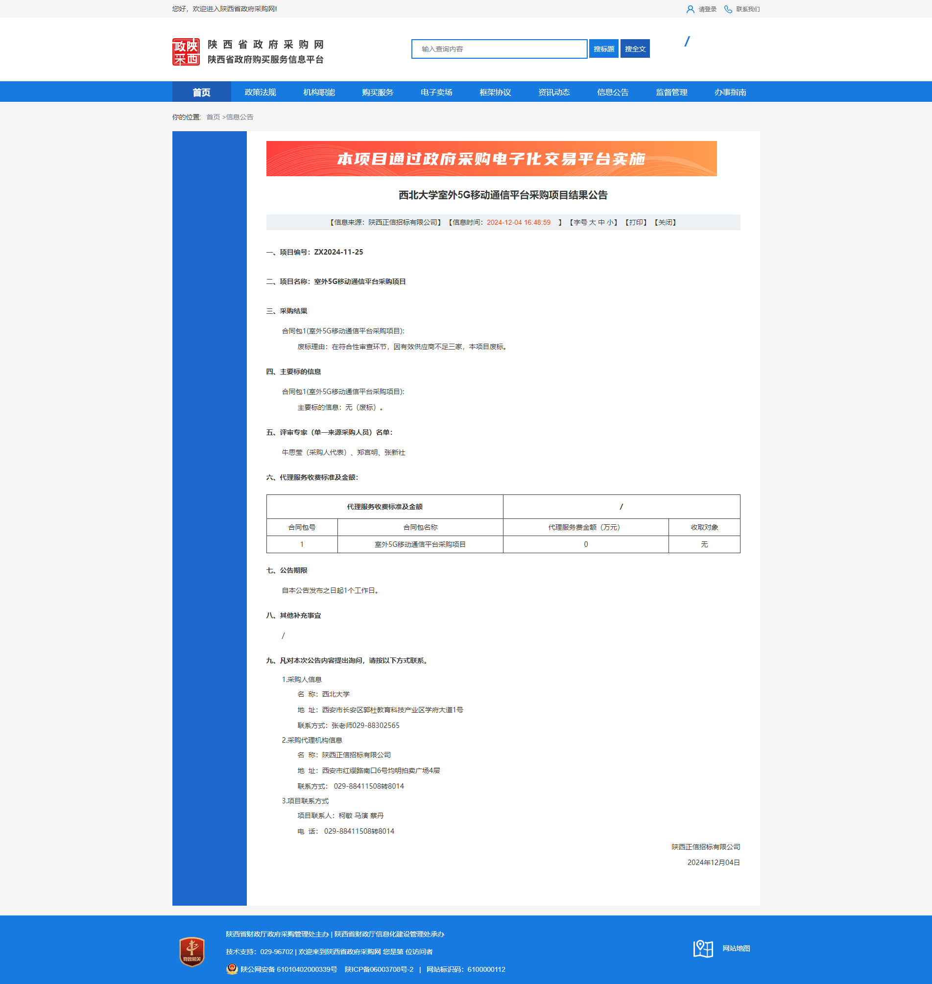 全讯600cc大白菜室外5G移动通信平台采购项目结果公告