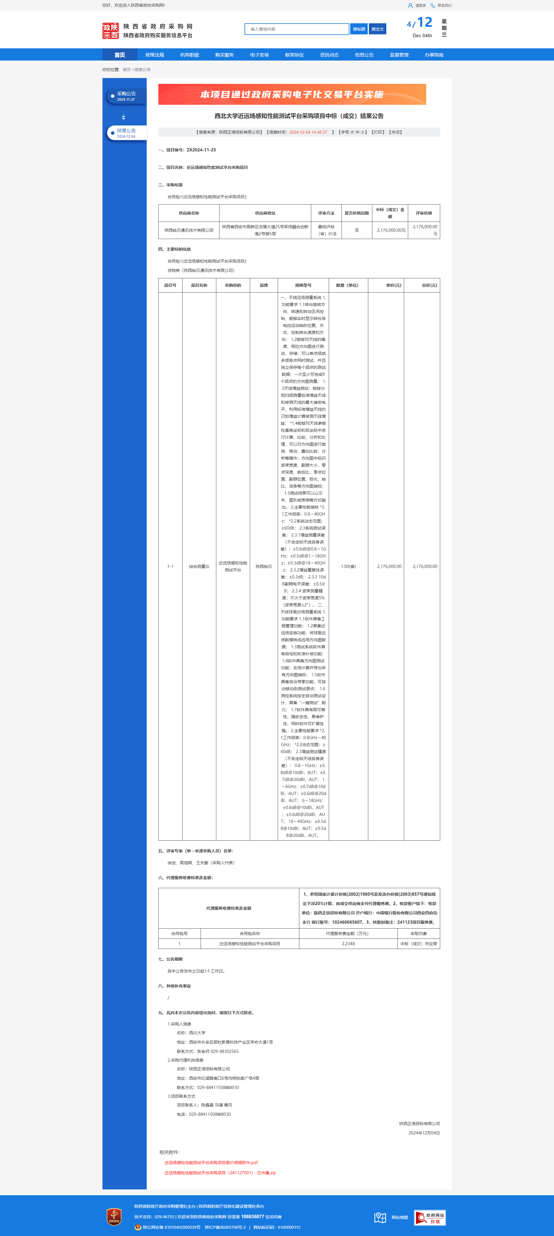 全讯600cc大白菜感知元件电磁参数测试平台等设备采购项目中标(成交)结果公告