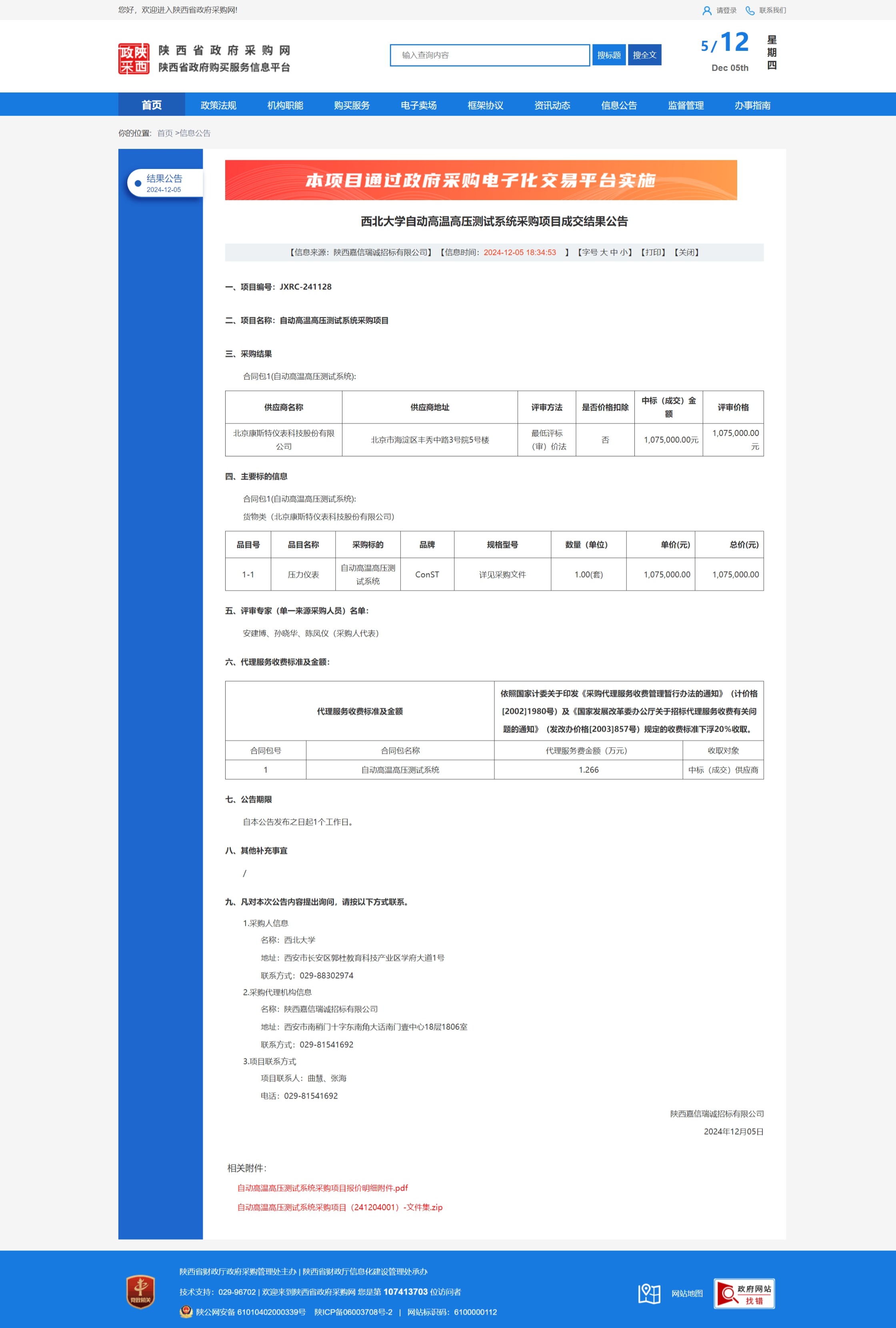 全讯600cc大白菜自动高温高压测试系统采购项目成交结果公告