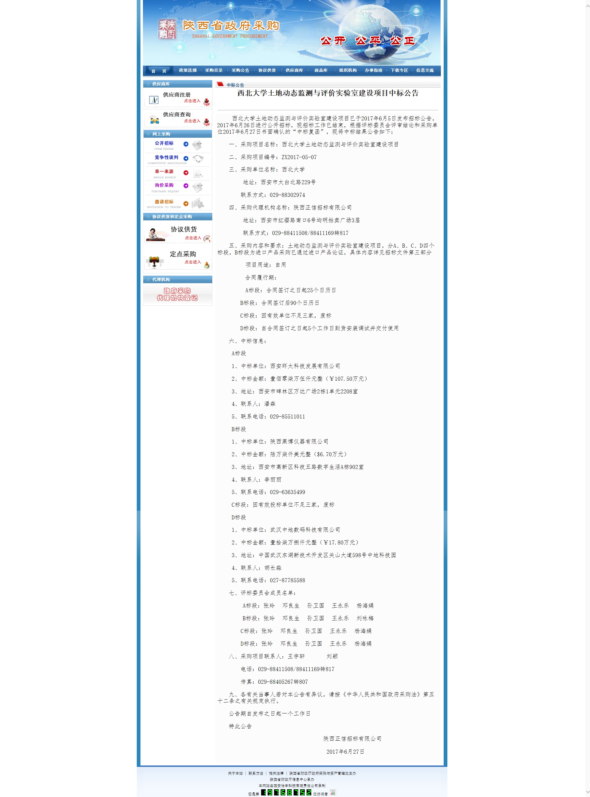 全讯600cc大白菜土地动态监测与评价实验室建设项目中标公告 作者: 编辑: 时间:2017-06-28 15:32 http://www.ccgp-shaanxi.gov.cn/zb_view.jsp?NewsID=ZH170627164032US160408011615&ClassBID=C0002