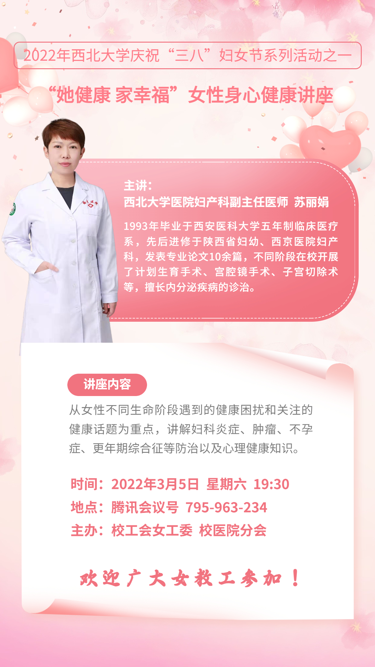 关于“她健康 家幸福”女性身心健康讲座的通知