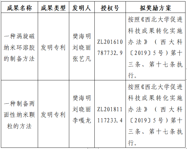 附件:拟许可成果信息及奖励方案