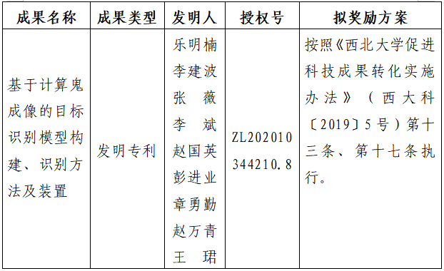 附件:拟许可成果信息及奖励方案