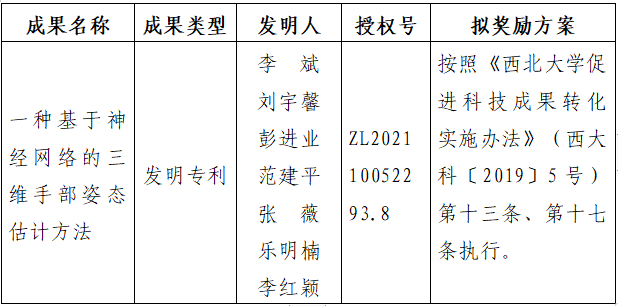 按照《全讯600cc大白菜促进科技成果转化实施办法》(西大科〔2019〕5号)相关规定,拟对白菜官网信息科学与技术学院张薇老师作为成果负责人的1项发明专利权实施转化,现将相关信息公示如下: