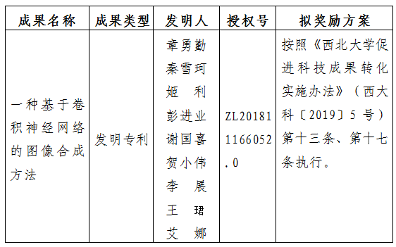 按照《全讯600cc大白菜促进科技成果转化实施办法》(西大科〔2019〕5号)相关规定,拟对白菜官网信息科学与技术学院章勇勤教授作为成果负责人的1项发明专利权实施转化,现将相关信息公示如下: