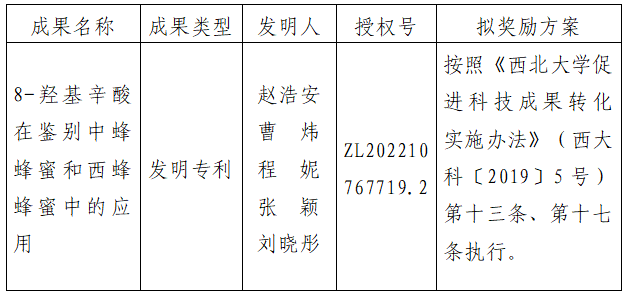 按照《全讯600cc大白菜促进科技成果转化实施办法》(西大科〔2019〕5号)相关规定,拟对白菜官网食品科学与工程学院赵浩安副教授作为成果负责人的1项发明专利权实施转化,现将相关信息公示如下: